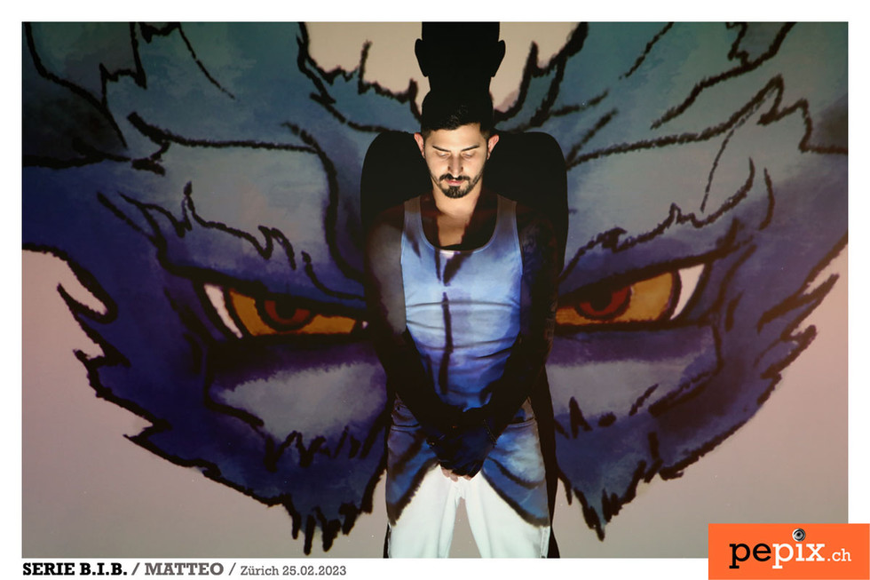 Dieses Mal eine spannende Symbiose. Die projetzierten Bilder stammen vom Künstler Lapin Joe. Model Matteo alias TEO ist bereits das 3. Mal im Blog zu sehen.